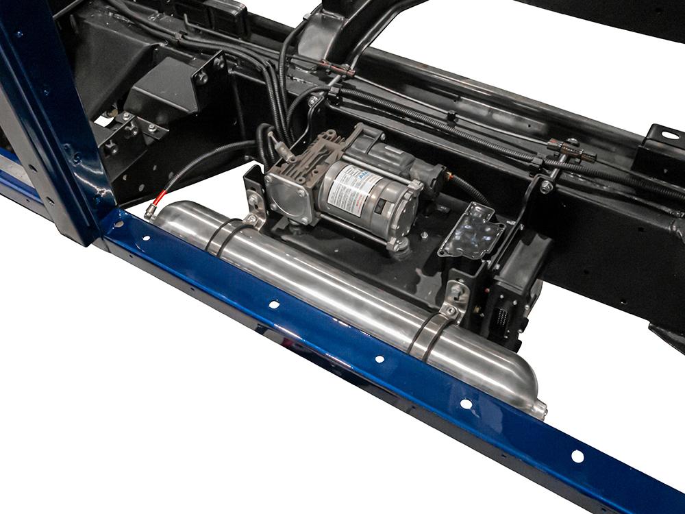This front and rear axle full air suspension kit incorporates on-board air control which is a fully automatic Electronically Controlled Air Suspension (ECAS) System. When fitted, the system provides comfort while maintaining a programmed ride height irrespective of the load. Multiple vehicle heights are available at the push of a button.