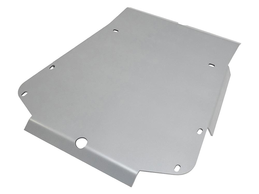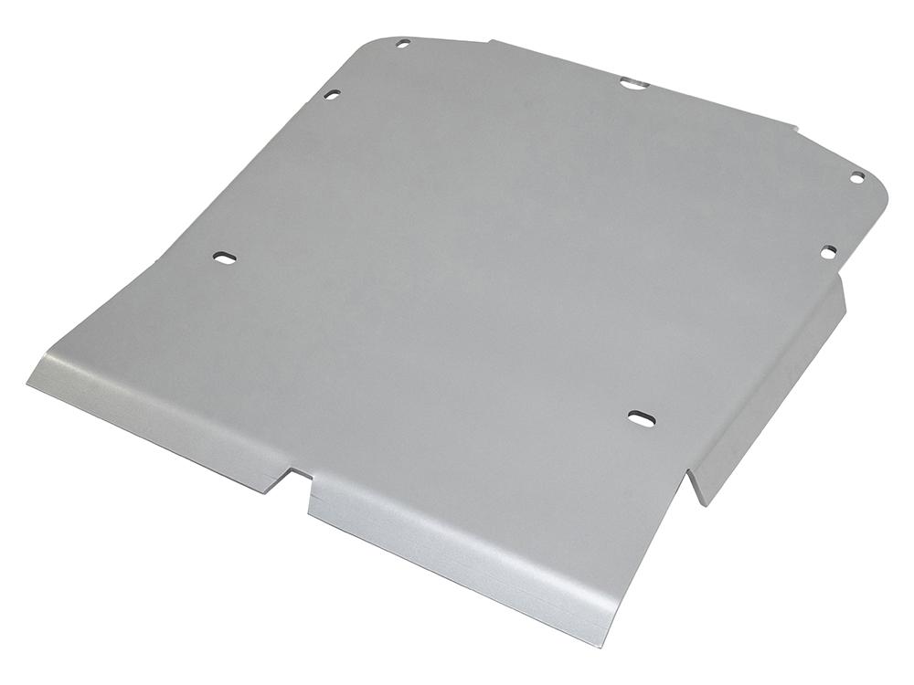 DA7536 shown with DA7532 also fitted.This sump plate protects the underside of the engine and allows the car to slide over objects, forward and backwards due the rear lip. With a natural finish the plate is made from 6mm 5083 grade aluminium and has been water jet cut to a precise finish. Plate bolts directly into existing holes and bulkheads already in the chassis, using the standard Land Rover fixings.