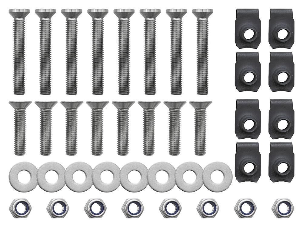 Using these smart stainless steel replacement bolt and screw kits will prevent rust from spoiling your Defender’s bodywork - ideal for smartening up your vehicle or a restoration project.The J-clips are carbon and phosphor coated to give 450 salt hour lifeKit list -8 x nyloc Nuts8 x M8 x 35mm countersunk allen head bolts8 x M8 x 55mm countersunk allen head bolts8 x M8 J-clips16 x M8 flat washers (not pictured)