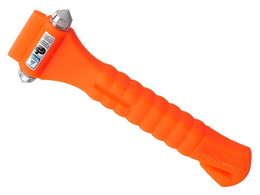 > Extra hardened double-sided steel hammer heads for shattering windows quickly and easily for a safe and quick exit from any vehicle