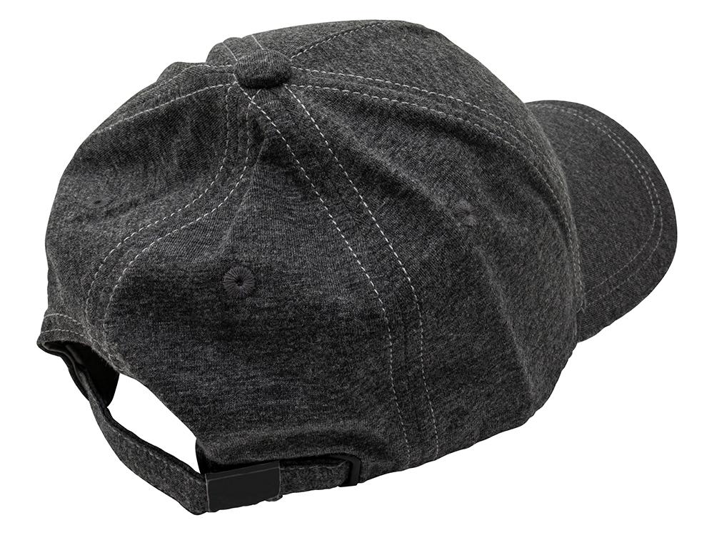 A five-panel design featuring a convenient adjustable strap and a blended fabric that offers both stretch and enhanced breathability.