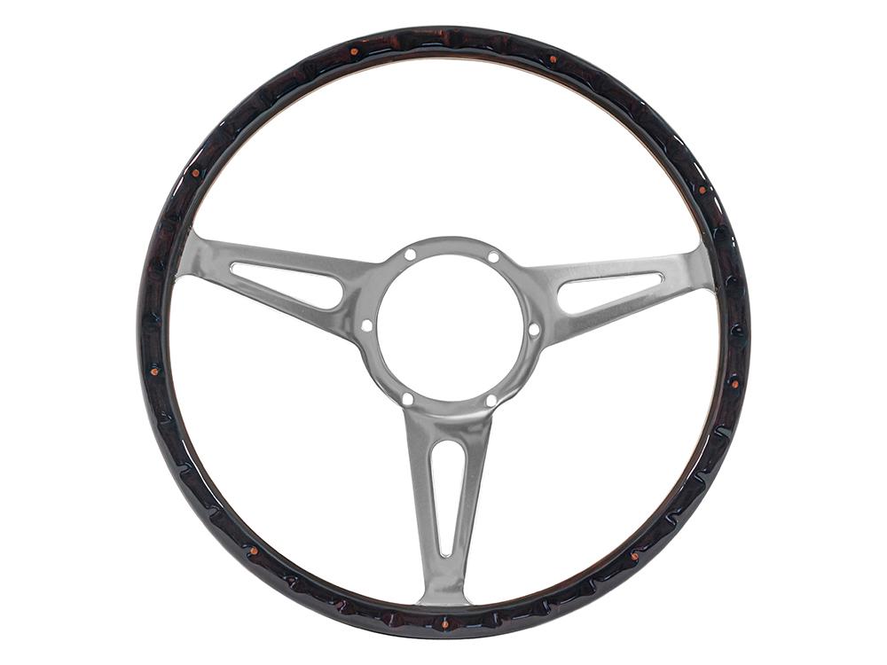 Steering Wheel 15Inch Rivited Dark Wood Semi Dish