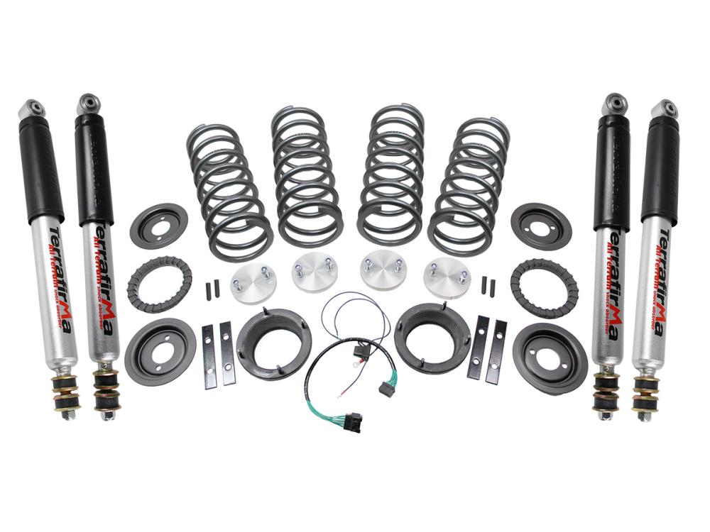 The EAS system fitted to P38 Range Rovers and the rear of Discovery 2 can be expensive to repair and not especially reliable when heavily laden. Eliminating the costly components, coil conversion kits offer an economical repair or upgrade. When fitted with the relevant springs significantly increased load carrying can be achieved.All P38 Range Rovers were fitted with an air suspension system which at the time was regarded as state of the art, providing high levels of comfort. The P38 has generally stood the test of time with a loyal band of supporters keeping them roadworthy and in good shape. The cost of repairing sophisticated systems can be unviable but with an air to coil spring conversion kit all the potential expense is dealt with in one go. The springs have been developed to match the standard ride height with a HD package giving a 1 inch lift from standard height and a greater capacity for increased loads.The kit includes instructions & everything necessary to isolate the electronics, eliminate unwanted dash lights & all the hardware to convert to coil springs. There are also kits that include uprated shock absorbers.